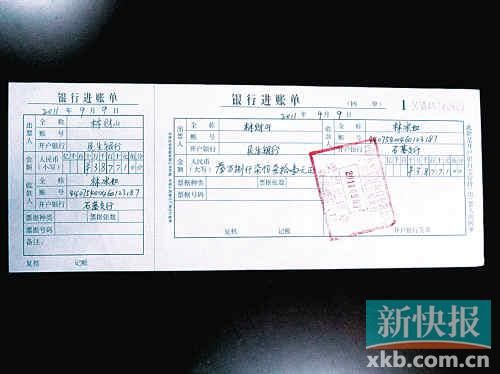 马亚典一行人的投诉准备工作做得十足,他们都带了企业的营业执照,还有消毒协会任命其公司为理事单位的证明、与协盈公司往来的各种单据等等。其中企业与协盈公司往来的各种单据引起了记者的注意,其中协盈的收据上面盖着消毒协会的公章。而另一张银行进账单上面,支付给某消毒企业货款的出票人一栏赫然写着消毒协会会长“林财山”的名字。