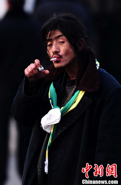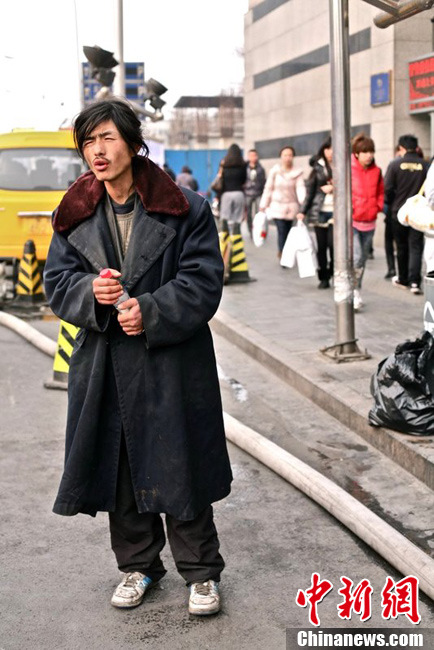 3月22日,北京,“国安犀利哥”的名字在网上蹿红。其一身邋遢的衣服,靠捡瓶子买年票观看北京国安的比赛。记者采访到他得知,他在13年前就因为看球,与家人产生矛盾,搬出位于西城的家,靠流浪捡瓶子过活。