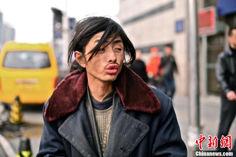 3月22日,北京,“国安犀利哥”的名字在网上蹿红。其一身邋遢的衣服,靠捡瓶子买年票观看北京国安的比赛。记者采访到他得知,他在13年前就因为看球,与家人产生矛盾,搬出位于西城的家,靠流浪捡瓶子过活。图为周旭正在与朋友聊天