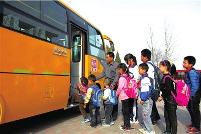 天津市武清区梅厂镇东梁庄村的孩子们登上校车。新华社发