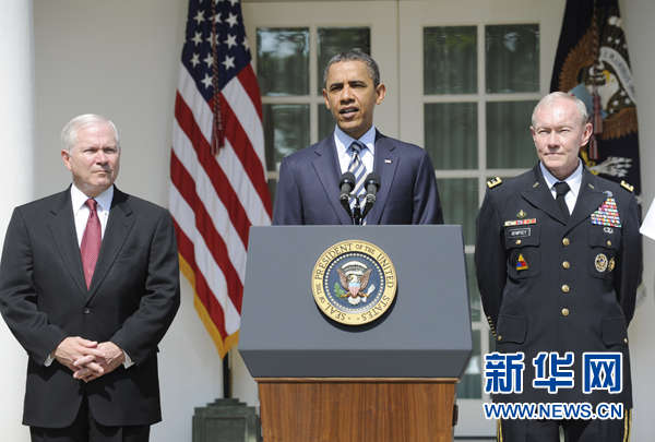 5月30日,在美国首都华盛顿白宫玫瑰园,美国总统奥巴马(中)宣布提名陆军参谋长马丁·邓普西(右)接替迈克尔·马伦,出任下一届美军参谋长联席会议主席。奥巴马当日还宣布提名美军北方司令部司令詹姆斯·温内费尔德为参联会副主席,美军联合部队司令部司令雷蒙德·奥迪尔诺则将接替邓普西出任陆军参谋长。上述提名均须获得参议院批准。新华社记者张军摄