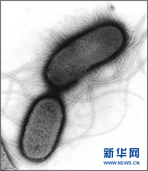 这是5月30日德国罗伯特·科赫研究所提供的肠出血性大肠杆菌的电子显微镜照片。