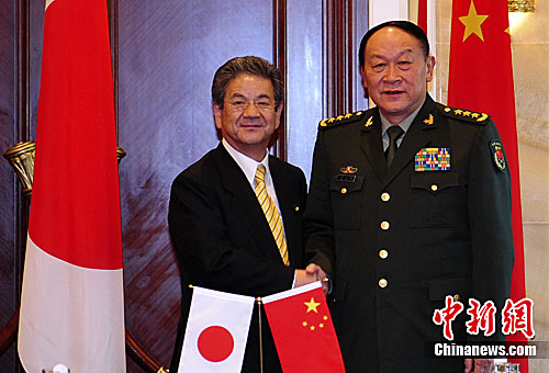 资料图:4日下午,在新加坡出席香格里拉对话会的中国国务委员兼国防部长梁光烈,会见了日本防卫大臣北泽俊美,双方就防务关系和其他共同关心的问题交换了意见。梁光烈欢迎北泽俊美在今年方便的时候访华。中新社发 陶社兰 摄
