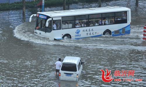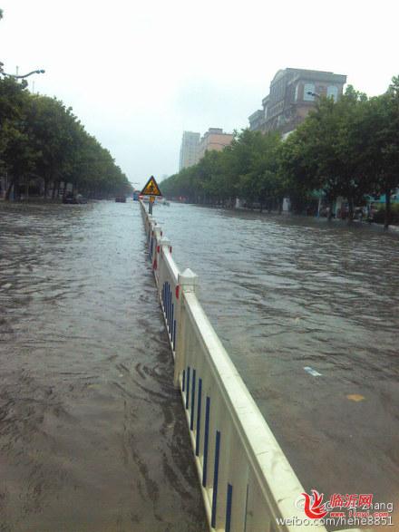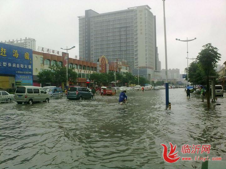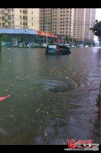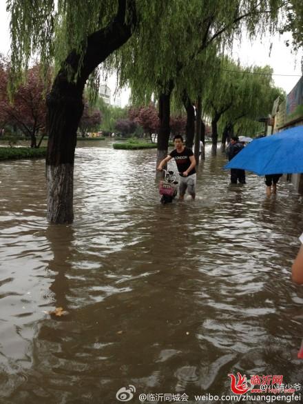 此外,临沂城区部分地段由于积水较深,导致交通受阻,一些路段变成“泽国”,市区部分地方积水深达40厘米。