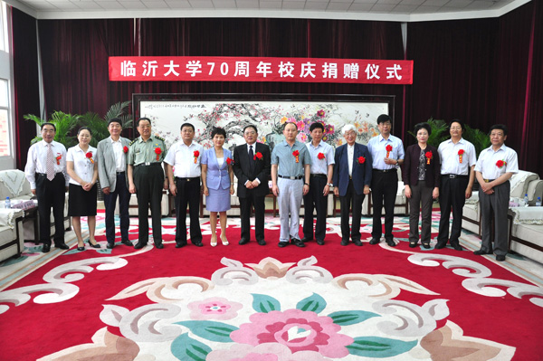 青岛华仁世纪集团捐赠500万元人民币,中国移动通信集团山东有限公司临沂分公司捐赠100万元人民币,沂州集团有限公司、山东九州商业集团有限公司分别捐赠50万元人民币。临沂大学校长韩延明代表学校接受捐赠,并向捐赠企业代表颁发捐赠证书。
