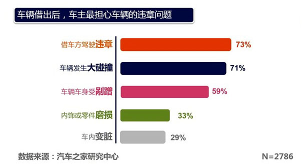 根据调查来看,出借车辆发生麻烦的情况真的很多——73.4%的车主表示在车辆借出过程中发生过违章,58.8%的车主爱车被剐蹭。可是,只有18.81%的车主表示这些问题借车方会主动处理掉。