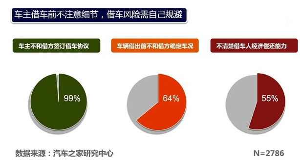 根据调查来看,出借车辆发生麻烦的情况真的很多——73.4%的车主表示在车辆借出过程中发生过违章,58.8%的车主爱车被剐蹭。可是,只有18.81%的车主表示这些问题借车方会主动处理掉。
