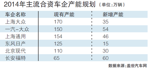 2014主流合资车企产能规划