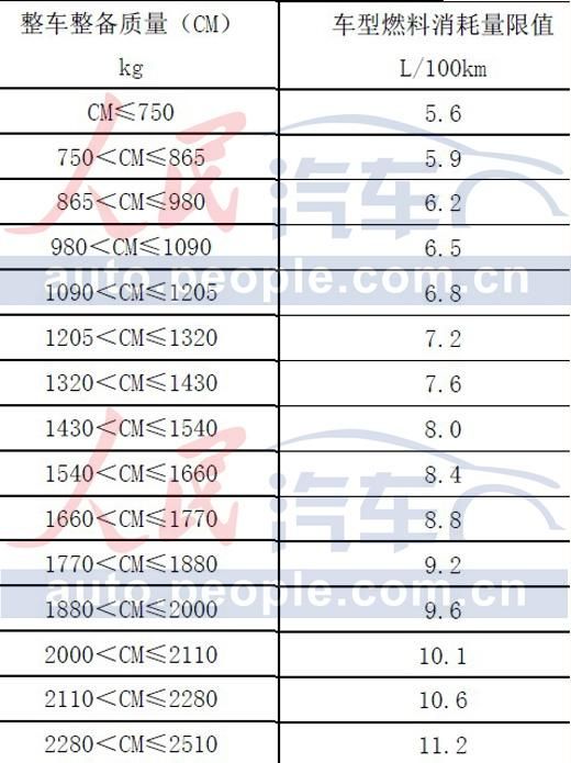 乘用车燃料消耗量的限值