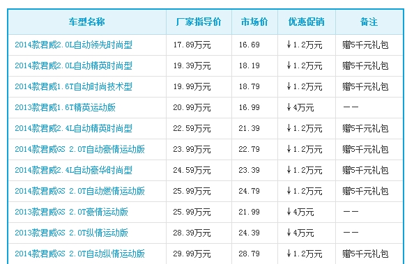 近日,编辑从临沂丰汇别克4S店了解到,临沂丰汇别克2013款君威最高优惠4万元,2014款君威最高优惠1.2万元,感兴趣的朋友可以到店咨询购买,具体优惠信息如下: