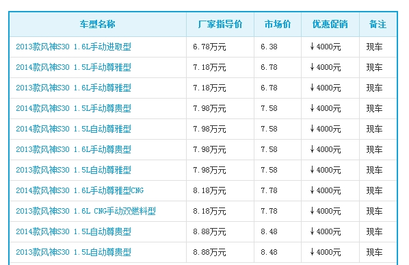 购风神S30最高优惠4000元 现车充足