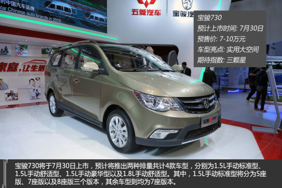 宝骏730是上汽通用五菱为中国大家庭量身定制的专属7座家用车,集7座超大空间、五星安全、驾乘皆宜、超值配置等特点于一身。这款上汽通用五菱首次采用前置前驱布局的7座车,相比五菱宏光S,是一款完全家用化的产品,同时也完全适合中国百姓的生活使用。
