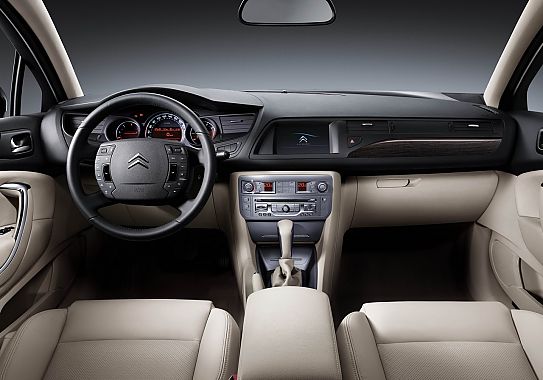 内饰方面:新车的内饰设计以别致优雅为主,中控台和车门上的桃木装饰给人一种清爽自然的感觉。上下深浅搭配的内饰颜色、真皮电动调节前排座椅、独特的门内拉手、中控台上呈扇形布置的空调控制按钮,以及配有银色金属黑色皮面的换挡杆都凸显了雪铁龙C5卓越的科技气息。值得一提的是,在C5中控台部分除了仪表板外,其上部还被工程师添置了一个信息显示屏,这个显示屏的功能包括,音响、车辆悬架高度、时间、车外温度及行驶状态等等,实用性真是非一般的强悍。