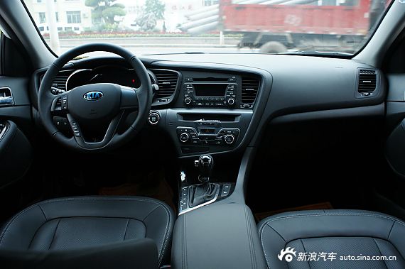 内饰方面:K5的中控台式有一定的向驾驶席倾斜的角度(9.6度)。这样更方便驾驶员操作中控台上的按键。另外有黑色和米色两种内饰颜色。