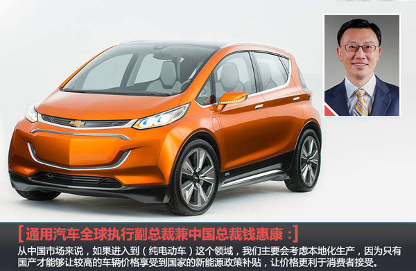 目前国内新能源汽车产品的销量目前仍处于较低水平,但保持着较高的增长势头。2014年国内新能源汽车销售为7.47万辆,比去年增长3倍多,其中纯电动销量在4万辆左右。此前雪佛兰在国内市场也推出了国产赛欧电动车型,针对雪佛兰Bolt是否考虑引入中国市场的问题,在北美车展现场通用汽车全球执行副总裁兼中国总裁钱惠康在接受网通社采访时表示:“从中国市场来说,如果进入到(纯电动车)这个领域,我们主要会考虑本地化生产,因为只有国产才能够让较高的车辆价格享受到国家的新能源政策补贴,让价格更利于消费者接受。”相信随着国内新能源汽车市场容量的日趋成熟,雪佛兰Bolt未来有望与国内消费者见面。