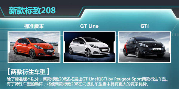 新款标致208将在今年3月的日内瓦车展进行首发亮相,并于6月率先在欧洲进行销售。随后,该车有望在2016年投放到中国市场。除了标准版本以外,新款标致208还拓展出GT Line和GTi by Peugeot Sport两款衍生车型。有了特殊车型的助阵,更为丰富的产品家族,将使新款标致208在同级别车型当中具有更大的竞争优势。