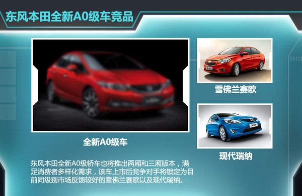 从目前的A0级家轿市场来看,雪佛兰赛欧去年12月正式完成换代,较低的入门价格以及新发动机的应用,都令该车的产品竞争力得以充分提升,此外,在其他品牌中,现代瑞纳市场表现一直位居同级别车型前列,未来东风本田全新A0级轿车上市之后,无论从外观设计还是从动力总成上,都将竞争对手直接锁定为赛欧以及瑞纳等同级别车型。