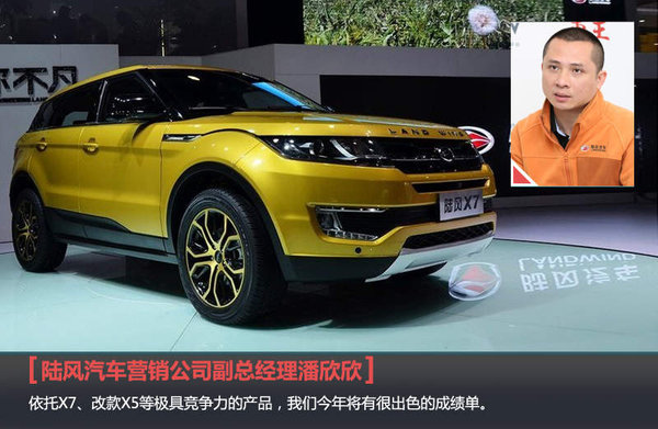 2014年陆风汽车完成近4万辆的销售成绩,随着3款更具竞争力的SUV,潘欣欣认为:“依托X7、改款X5等极具竞争力的产品,我们今年将有很出色的成绩单。”梳理陆风汽车去年的销售业绩,今年企业的销量增长率将达到25%以上。