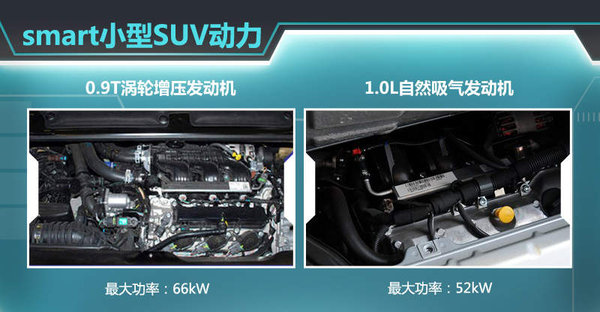 在动力方面,未来smart所推出的小型SUV车型有望搭载全新三缸的0.9L涡轮增压与1.0L自然吸气两款发动机。其中0.9T可输出最大功率66kW、 峰值扭矩135Nm/2500rpm,而1.0L自然吸气发动机的最大功率为52kW、峰值扭矩91Nm/2850rpm。