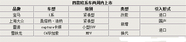 欧系两周4款新车上市 多为低价进口车型