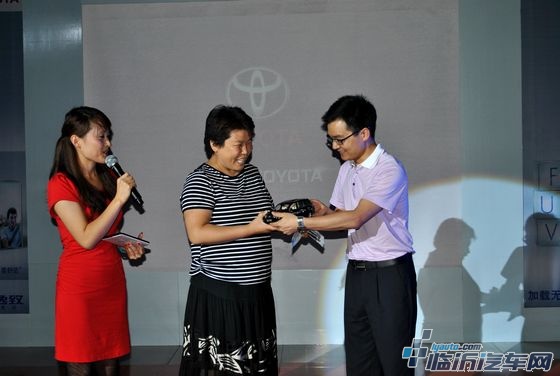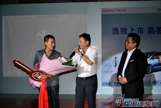 临沂首位FUV车逸致车主、广汇山东区域罗总(中)、广汽丰田临沂君来店刘总(右一)
