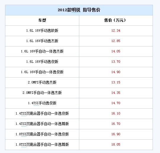 2012款明锐正式上市 售12.34-18.05万元