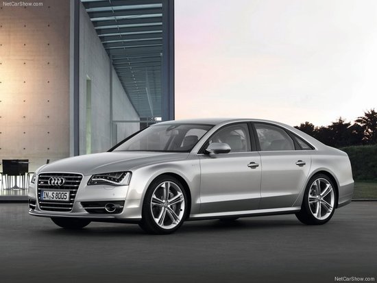 车窗部分的饰条也被取消以符合运动化车型的需求,铝制风格的外后视镜壳、双侧双出后排气管,独特的20英寸五幅运动化轮毂(可选21英寸轮毂)、黑色的刹车卡钳配合前400毫米、后365毫米的大尺寸打孔刹车盘(还可选择碳纤维刹车盘)都是S8所独有的配置。同时,S8也标配了LED头灯和双层玻璃。