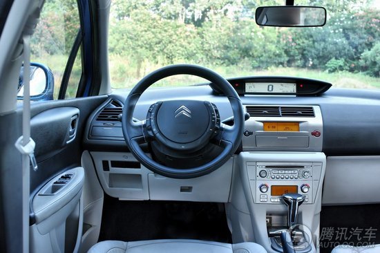 世嘉的内饰和进口C4轿跑版相同,金属质感很强的镀铬拉斯面板,不论是看上去还是触感都很不错,俨然让内饰提升了一个档次。方向盘依然是典型的雪铁龙风格,中央固定集控式方向盘会让初次驾驶的乘客感到新奇,方向盘中央集合了所有能想到的功能按键,确实方便了不少,驾驶时的安全性也大大增加。