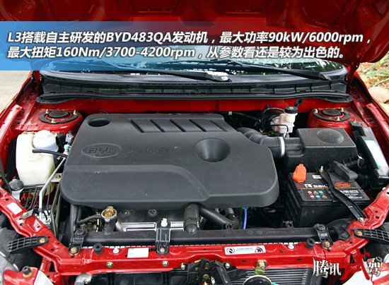 在动力方面,由于所有的CVT车型均搭载的是1.8L发动机,所以我们也只为大家介绍这款发动机的概况,这款编号为BYD483QA发动机的最大功率为90kW,最大扭矩为160N·m,整车的最高时速为175公里,另外,此次比亚迪L3车型的CVT变速箱应该仍旧是比利时punch邦奇南京工厂的产品,带有手动模式和S挡运动模式。这款变速箱同时也使用在国内多款自主品牌车型上,例如长城炫丽、凌傲和M2等车型。