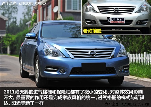 外观上天籁延续了雅阁、凯美瑞那种中庸之道,整体造型看着很和谐,车身比例也非常符合中型车的定位。至于亮点,2011款天籁的前进气格栅镀铬装饰面积更大,不但和家族风格统一,同时看起来也更显档次。而车尾2011款与老款相比差异不大,仅仅是尾灯各功能区的配色略有不同。