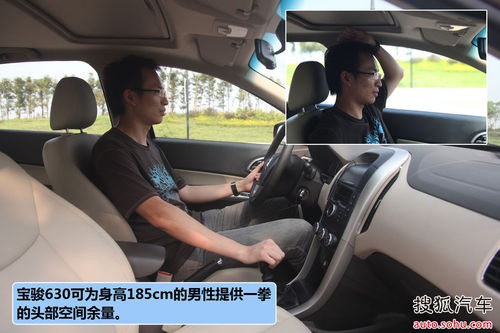 我们来看看宝骏630的空间表现,身高1.85米的体验者调节好驾驶坐姿,在驾驶席有一拳的头部空间余量;而在保持前排座椅调节不变的前提下;坐在后排能获得一拳左右的腿部空间,不过头部空间略微下降。总的来说,得益于2640mm的轴距,宝骏630的前后排空间表现基本上能让人满意,腿部空间还是比较有保证的。
