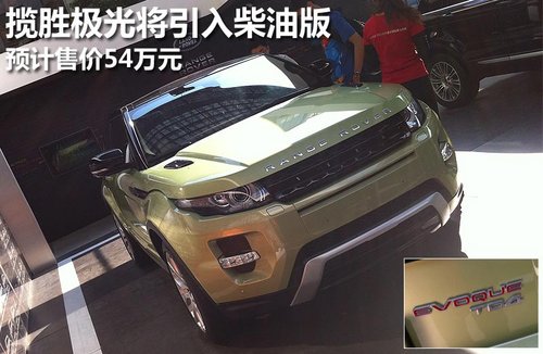 备受瞩目的路虎全新车型-揽胜极光Evoque,即将于11月上市销售,日前已公布62.8-63.8万的预售价,不过这只是2.0T涡轮增压汽油版车款。据了解,揽胜极光还将引入2.2L柴油版车型,预计售价54万元,柴油版展车已经出现在国内。