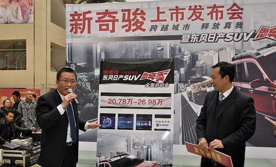 2011年11月26日,临沂易通汽贸集团易通、易利、易丰三家东风日产4S店在华丰国际商贸城举行了东风日产2012款奇骏在临沂的上市发布会暨东风日产SUV思奔季全面启动会。此次上市的新款奇骏主要在外观和内饰两大部分进行了重新设计,配置水平也较老款车型有所提高。全新上市的新款奇骏包括2.0L和2.5L两个排量共7款车型,售价在20.78-26.98万元之间。
