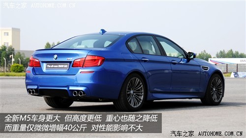 相比上一代M5,全新M5更长、更宽但车身高度更低,重心明显下移。为了适应市场的变化,新5系轿车在轴距上有所加长确实是件好事,但对于基于它而打造的M5来说,多出来的75mm则需要底盘多方面调整才能抵消它对操控的不利影响,反而增加了难度。在这种微微发福的情况下,整车质量仅有40公斤的小幅增重,可见其设计上何等了得。