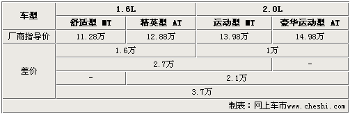首先我们来看看马自达3[综述 图片 论坛]星骋两厢几个车型在售价方面的差别,这款新车共分4款车型,分别为1.6L和2.0L两种排量,分为了舒适型、精英型、运动型和豪华运动型。由于在外观、内饰、舒适豪华配置以及动力方面存在着差异,这6款车型最高差价为3.7万元。