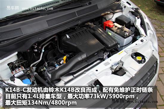 派喜上用的这款K14B-C发动机是以北斗星的K14B改良而成,是4缸16气门结构。目前利亚纳也采用该款发动机,拥有免维护的不锈钢正时链条,最大功率73kW/5900rpm,最大扭矩134Nm/4800rpm,而派喜仅有这个1.4L排量发动机,官方0-100米加速为13秒,最高车速达165Km/h,综合油耗为6.1L。