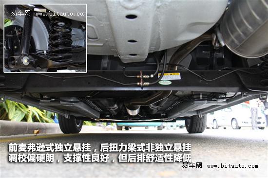 后悬挂采用性价比较高的扭力梁式非独立悬挂,调校偏硬朗,不过在过颠簸路段时,后排乘客的屁股就比较受罪了。派喜这样的小型车在高速和弯路时能拥有良好的车身姿态比较难得,稳健的感觉给我留下了较深的印象。而且底盘几乎全部涂有防震胶,有效降低来自底盘的噪音。