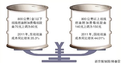 目前燃油是各航企的主要成本。2011年,东航航油成本提高到292.3亿元,同比增长35.3%。国航去年航油成本为337.87亿元,同比增加103.26亿元,大增44.01%。
