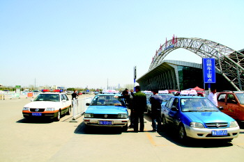 4月5日上午11时左右,在临沂市汽车客运总站出租车上客点,所有出租车都在待发区排队等候,按顺序流水发车。