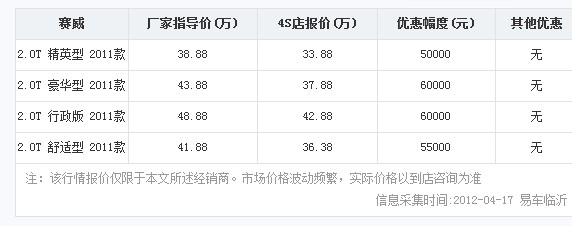 近日编辑从临沂上海通用凯迪拉克申华4S店处了解到,赛威最高优惠6万。具体降价明细如下表: