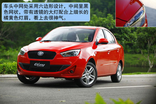一汽欧朗采用倒六边形、蜂窝状的前进气隔栅,设计风格和奔腾有几分相似。但欧朗的前大灯、前舱盖两侧隆起的弧线却给这款车增添了很多年轻气息。车头的大尺寸弧线保险杠的设计,给这款车的前脸勾勒出“笑脸”,看上去非常可爱。