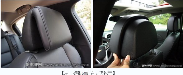 虽然功能相同,但两者的设计不同。508的头枕被设计成“钱夹式”,更方便调整,而迈锐宝的主动头枕为平移方式(君威、君越上也有配备),虽然操作不如508方便,但更贴合头颈部。