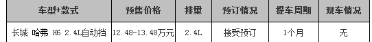 长城哈弗H6自动挡未到店 接受预订