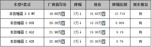 本田雅阁现车充足 最高优惠2万元!