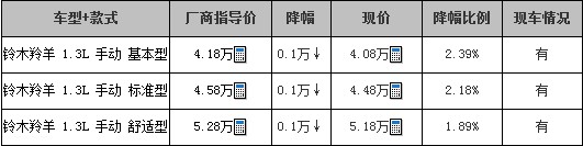近日,搜狐汽车编辑于临沂地区某长安铃木4S店了解到,现在购买2012款铃木羚羊可享现金优惠1000元。现车方面:目前店内现车充足,颜色为银白色,其它颜色需要预定,定金3000元,约两周后提车。感兴趣的朋友不妨到店详询。
