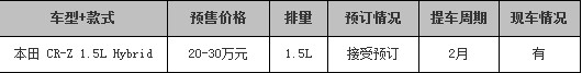本田CR-Z展车到店 订金1万2月提车