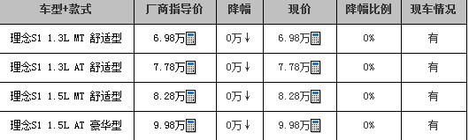 2012款理念S1除了1.5L手动车型以外,其他三款车型售价与2011款车型并无差异。新增1.5L手动车型搭载的发动机最大输出功率1.5马力,匹配了5速手动变速器。2012款理念S1在配置上将会有小调整,为了进一步增强了商品性,提升美观度和舒适度,2012款理念S1在雨刮、音响、轮榖等实用性、美观性配置方面进行了改良,更加符合中国消费者的使用需求。