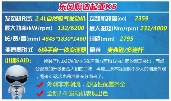 从产品本身角度出发,K5在产品的品质、车辆的设计方面都还是有一定优势的,不过有碍于品牌知名度和对消费者的影响力,所以K5未来要面对的挑战应该说还是比较大的,跟其他品牌车型相比,K5的优势在于其外形和配置,而且与国际同步的速度也是较其他品牌比较快的地方,这些都是值得肯定的。