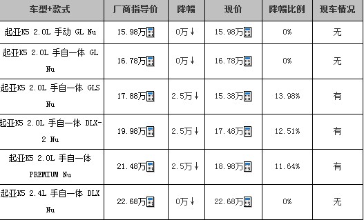 5月第4周临沂降价TOP10——悦达起亚K5优惠2.5万元
