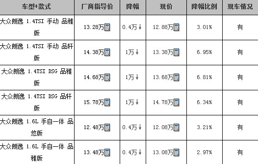 朗逸最高降10000元 店内现车较足!